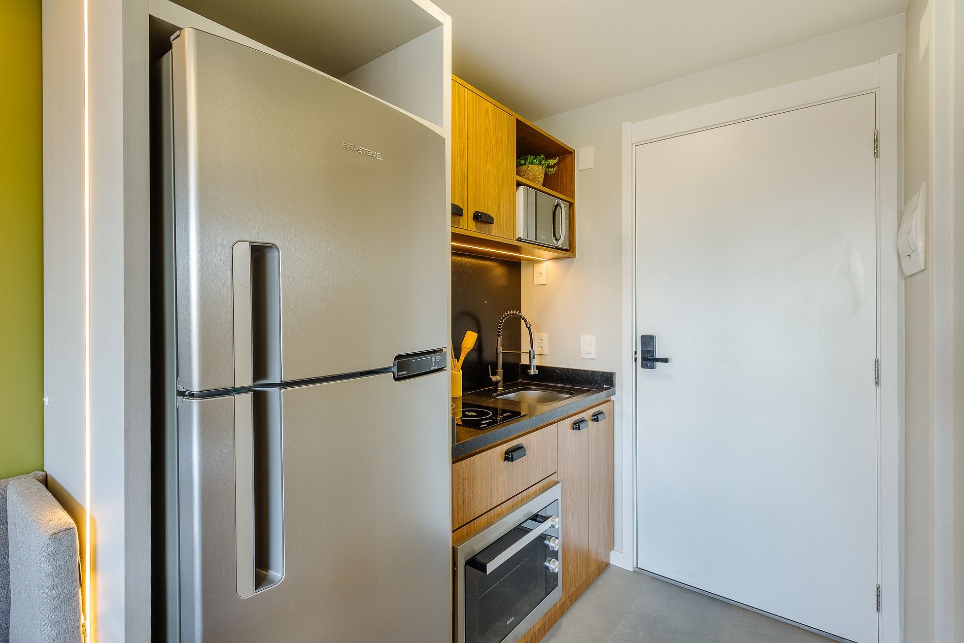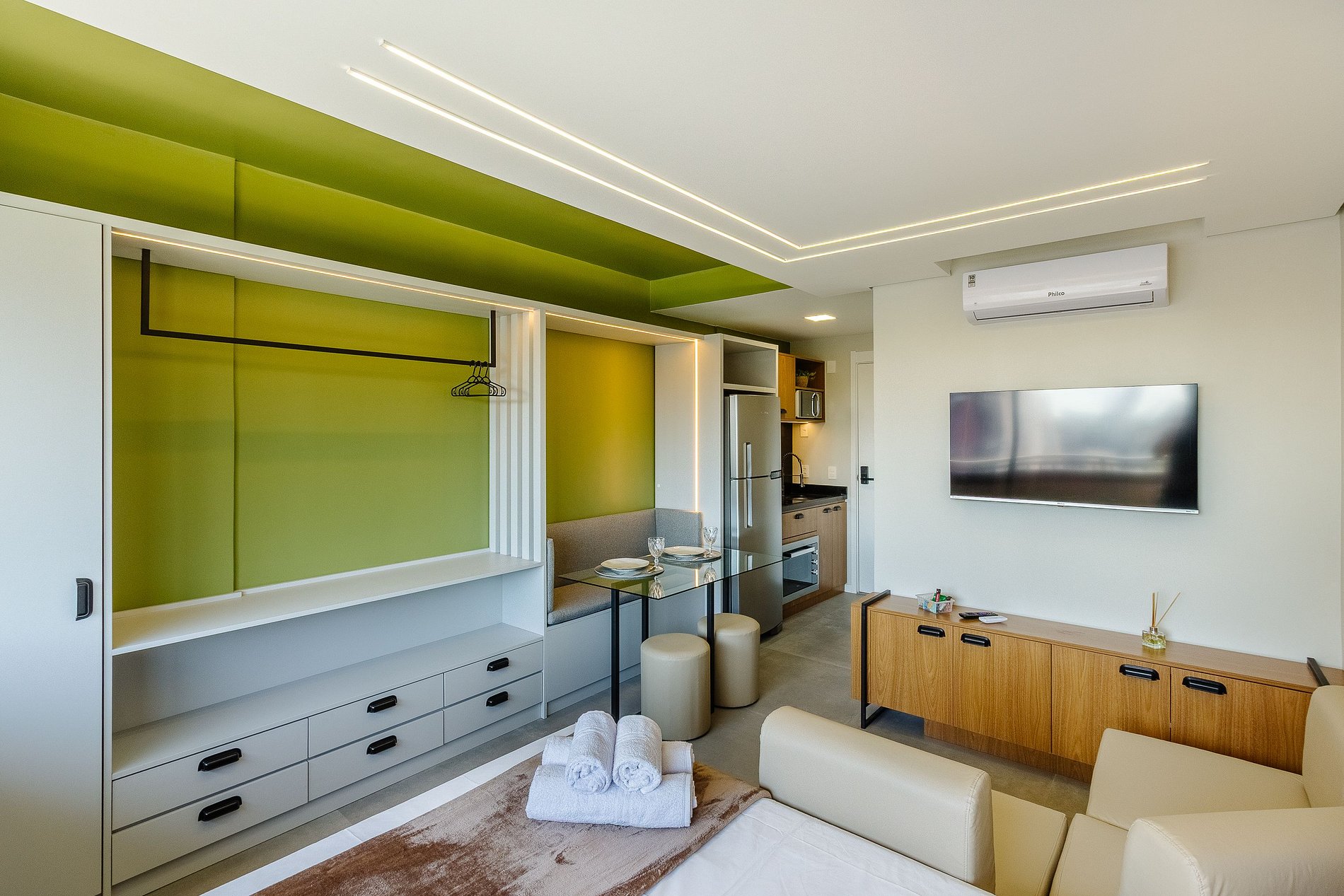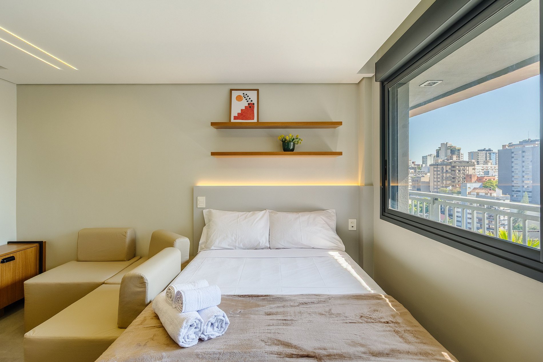 The highlight of this studio is access to the infinity pool with breathtaking views of the city, as well as an equipped gym, coworking space with fast internet and 24-hour concierge. Perfect for those looking for accommodation near Moinhos de Vento in Porto Alegre, with infrastructure similar to that of a hotel, but with the freedom of home.
