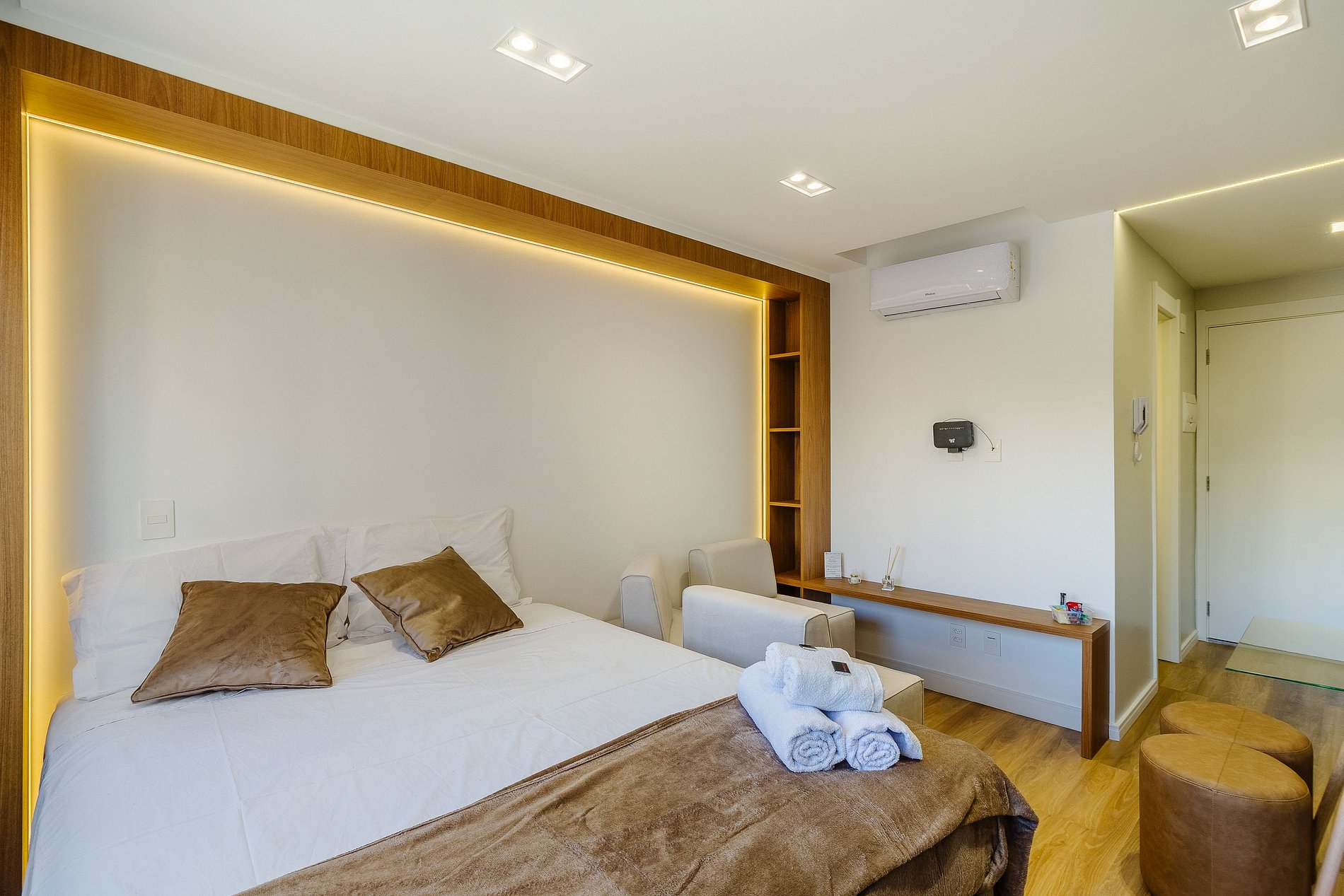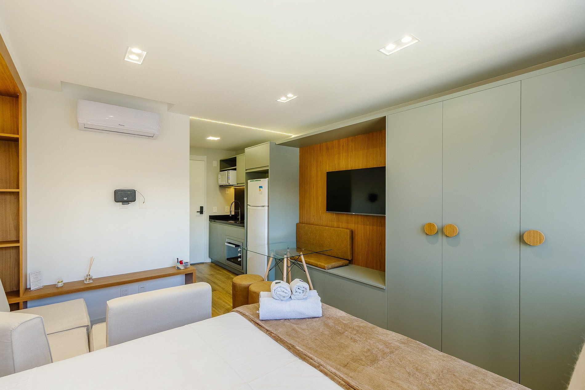 Excelente localização, apartamento muito bem equipado e novinho, e o atendimento da equipe que gestiona o apartamento é excelente, já que respondem muito rápido a qualquer dúvida que se tenha! De bônus, o edificio tem uma piscina linda e uma academia novinha!