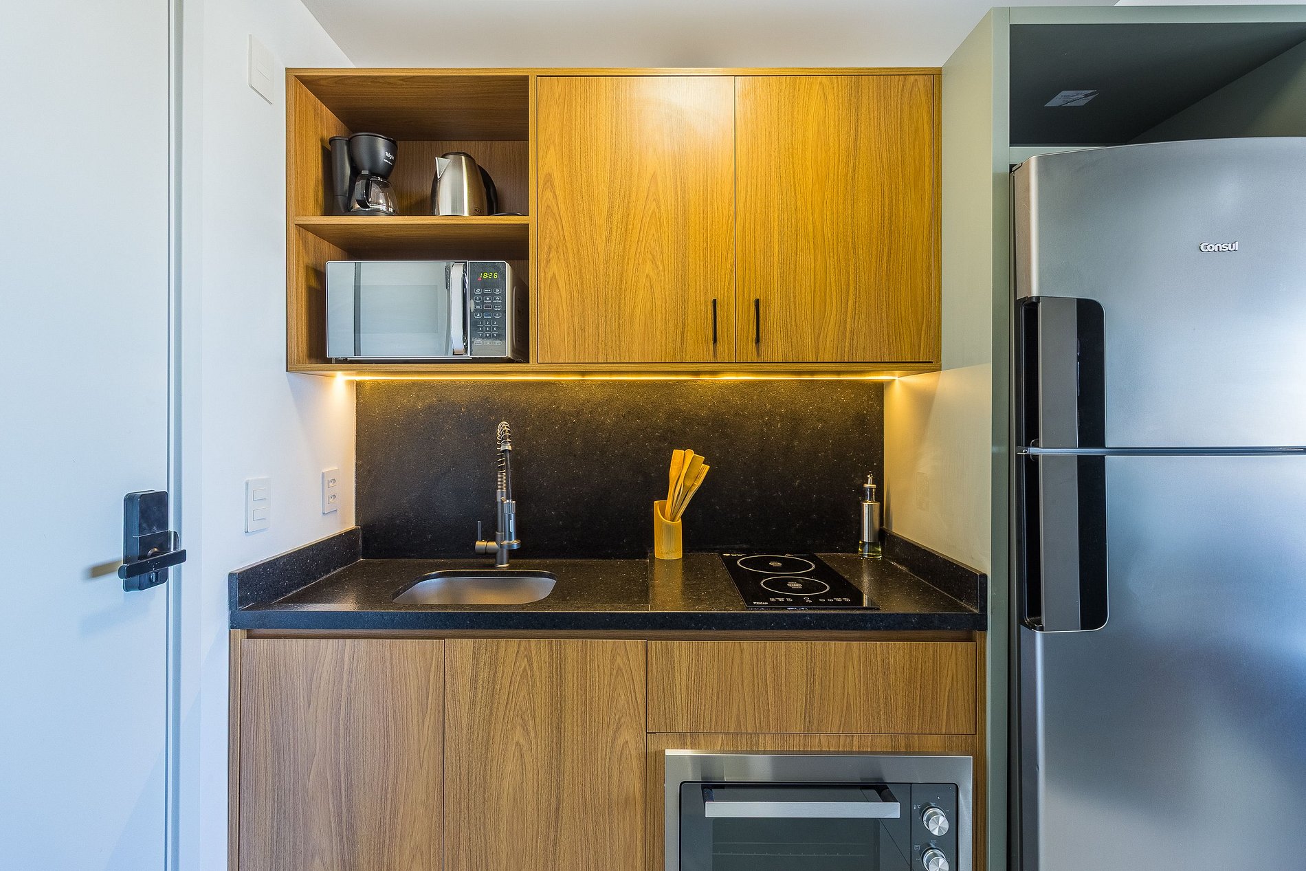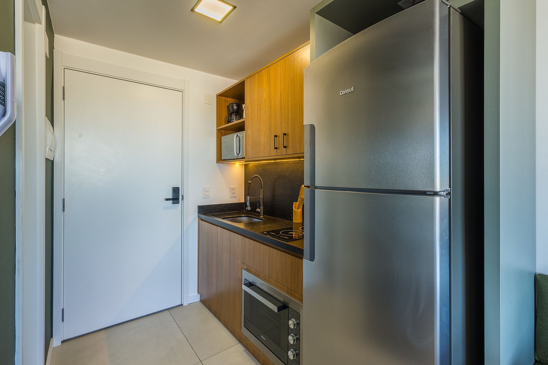 - Estudio situado en la planta 14, de aproximadamente 27 m². - Prohibidas las visitas. Sólo los inquilinos que hayan introducido sus datos de reserva tendrán acceso al edificio y a la habitación. - Prohibido fumar, incluidos los cigarrillos electrónicos. Sujeto a una multa de 200,00 R$. - Animales de compañía: Permitidas - Fiestas o eventos: Prohibido. - Horas de silencio: Desde las 22:00 hasta las 08:00. - No hay cambio de sábanas ni toallas durante su estancia. Este puede ser un servicio extra, por favor contacte con nuestros encargados. - Hay un interfono en todas las habitaciones; las entregas deben recogerse directamente del repartidor en la conserjería. - El gimnasio del edificio es de libre acceso para los inquilinos. Cuando lo utilice, le rogamos que respete las normas.