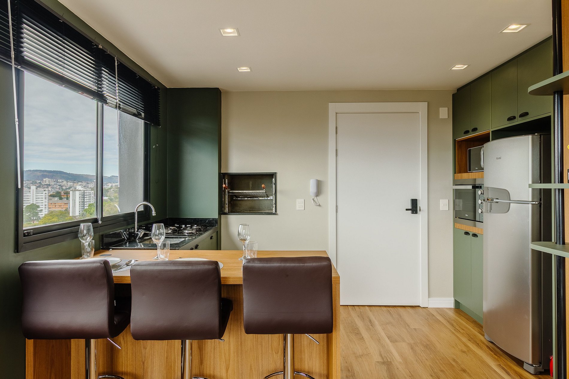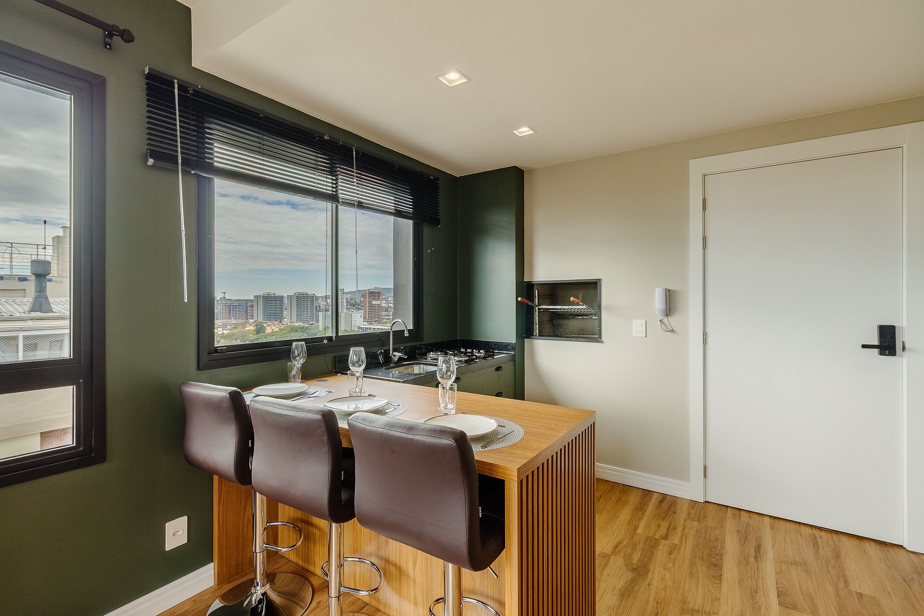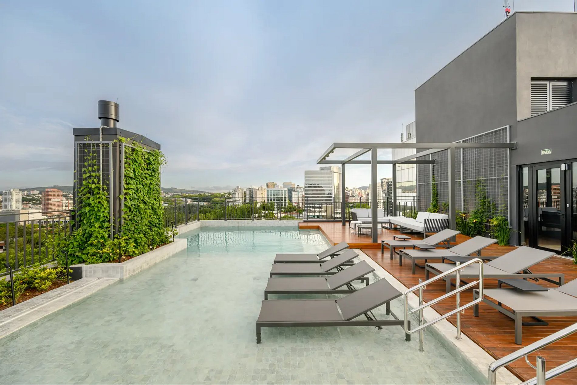 Lo más destacado de este apartamento es el acceso a la piscina infinita con impresionantes vistas de la ciudad, además de un gimnasio equipado, un espacio de coworking con internet rápido y conserje las 24 horas. Perfecto para quienes buscan un alojamiento cerca de los mejores lugares de Porto Alegre, con una infraestructura similar a la de un hotel, pero con la libertad de un hogar.