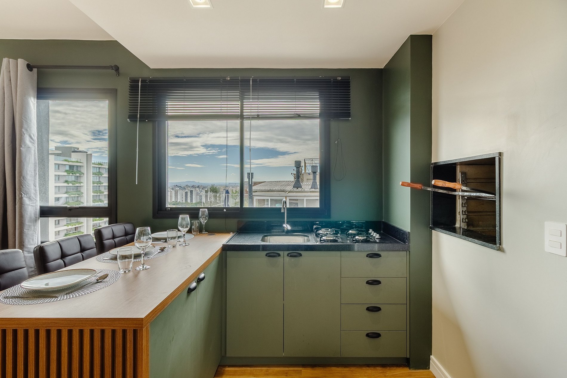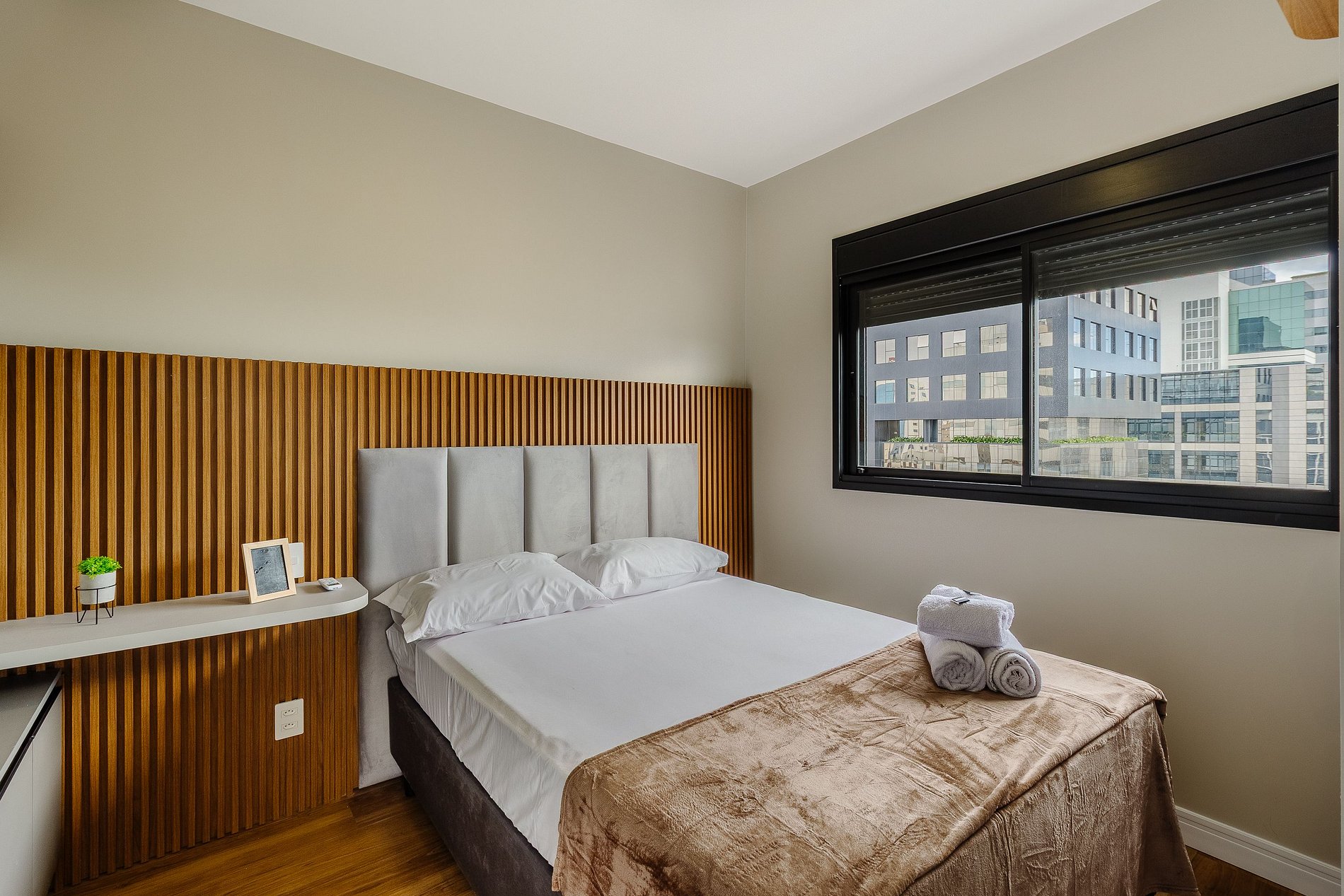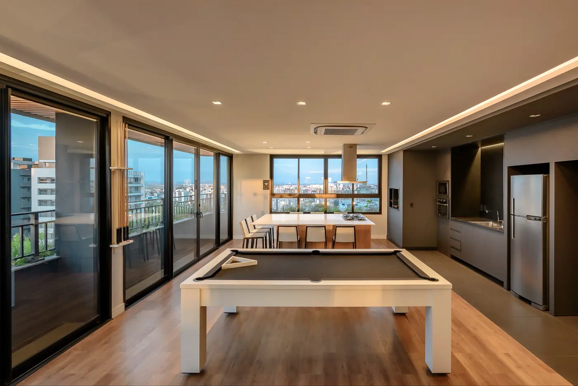 Aquí se pueden encontrar oficinas modernas y empresas tradicionales, comercios y servicios variados, con mucha movilidad y ocio muy cerca. Para quienes buscan una vivienda contemporánea. Apartamentos de 1 dormitorio con sofá cama en el salón con capacidad para 1 adulto o 2 niños. El apartamento cuenta con barbacoa y está totalmente equipado para recibir a los huéspedes. Dispone de todas las comodidades en la planta 14, con piscina para adultos, espacio para ver la puesta de sol, salón, espacio gourmet, sala de juegos, gimnasio, lavandería y mucho más.
