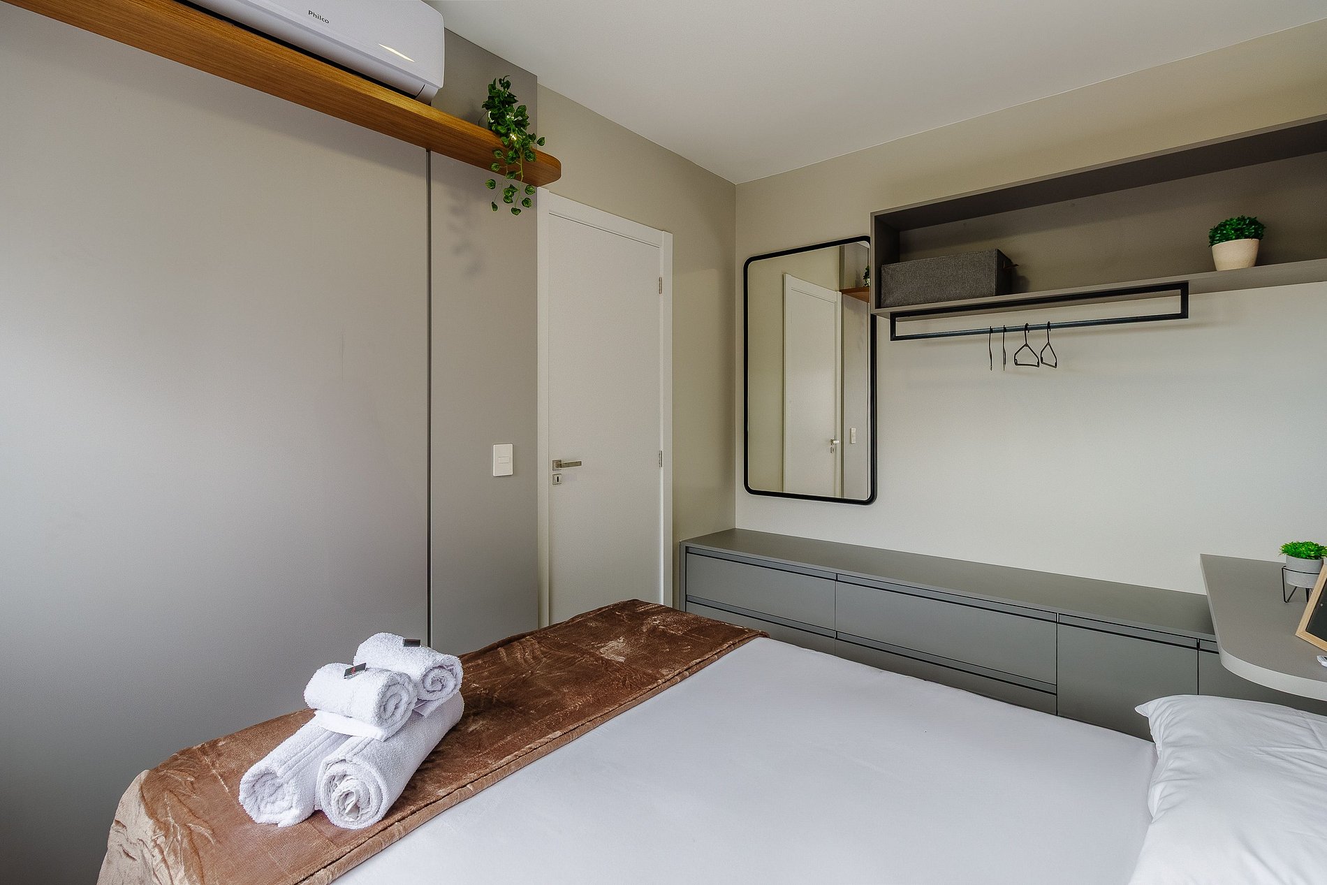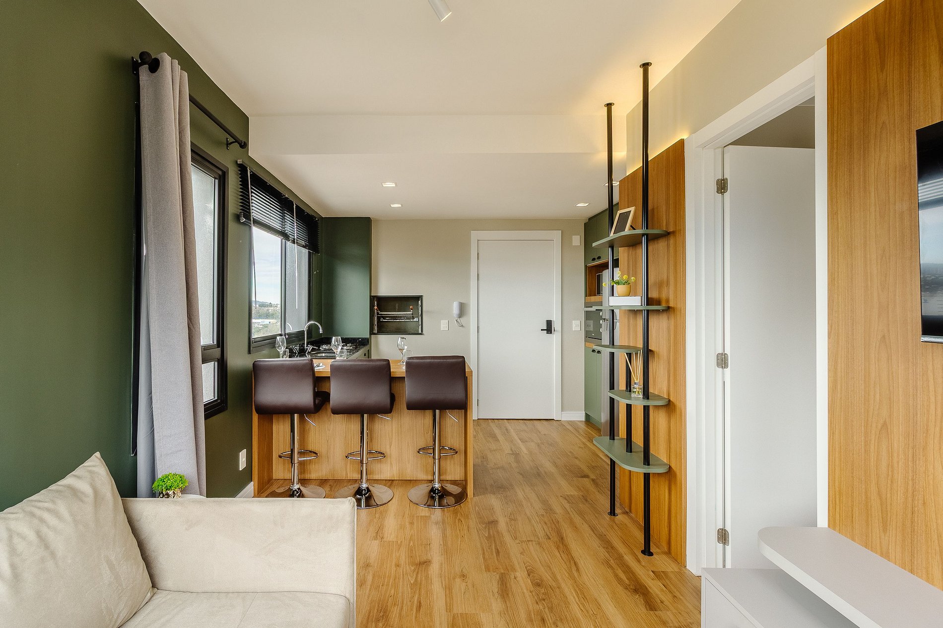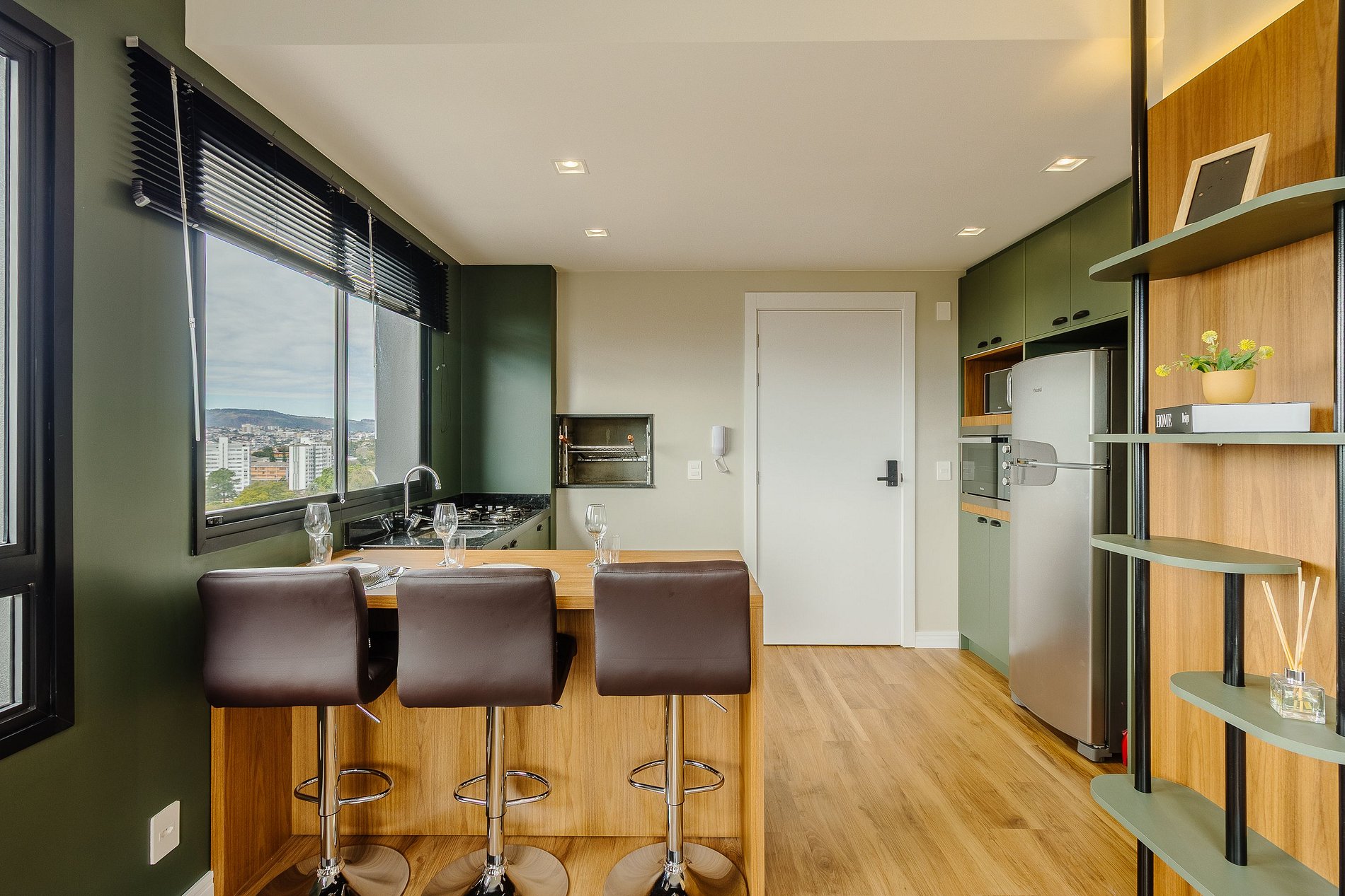 Aquí se pueden encontrar oficinas modernas y empresas tradicionales, comercios y servicios variados, con mucha movilidad y ocio muy cerca. Para quienes buscan una vivienda contemporánea. Apartamentos de 1 dormitorio con sofá cama en el salón con capacidad para 1 adulto o 2 niños. El apartamento cuenta con barbacoa y está totalmente equipado para recibir a los huéspedes. Dispone de todas las comodidades en la planta 14, con piscina para adultos, espacio para ver la puesta de sol, salón, espacio gourmet, sala de juegos, gimnasio, lavandería y mucho más.