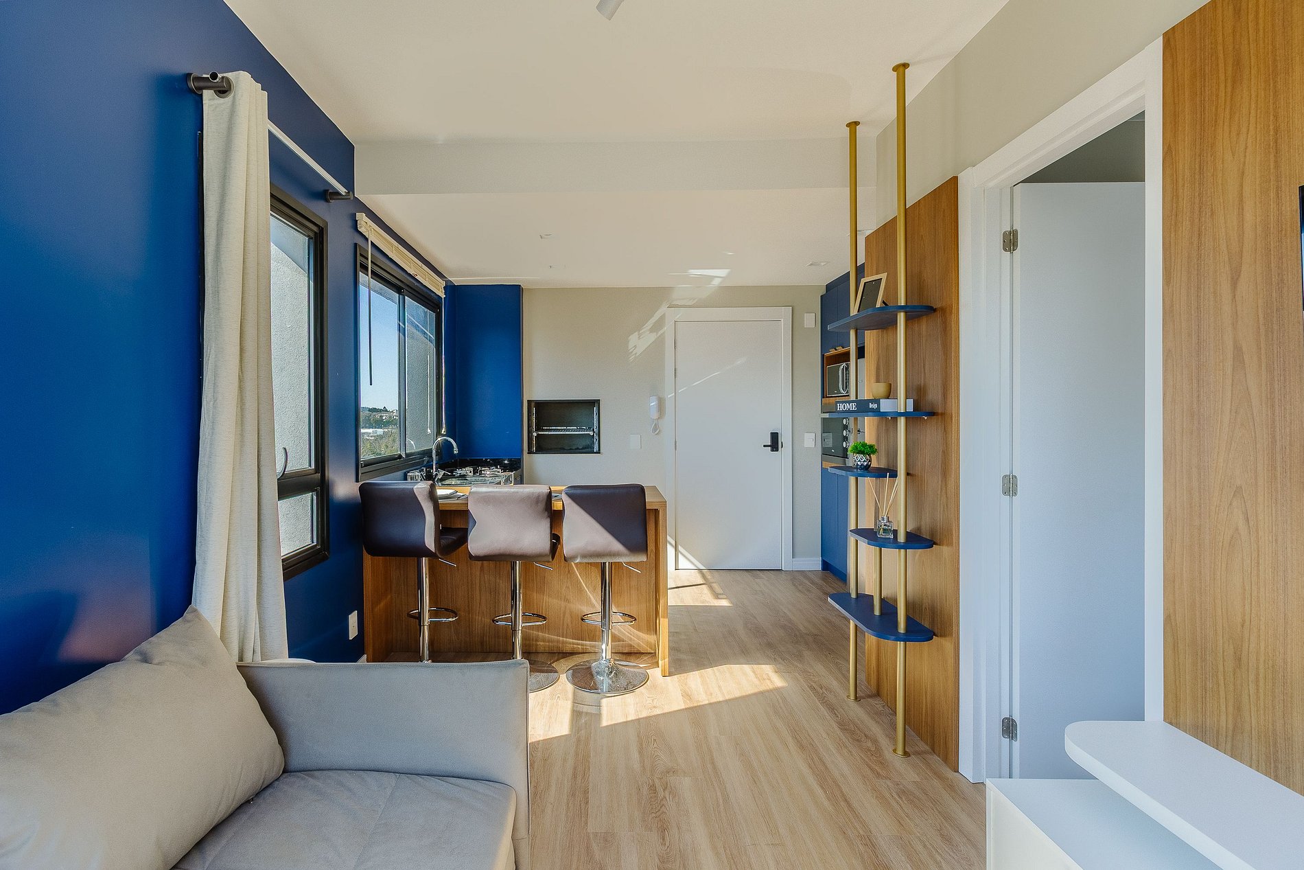 as cortinas da sala e da cozinha poderiam ser um pouco maiores para bloquear melhor a claridade.