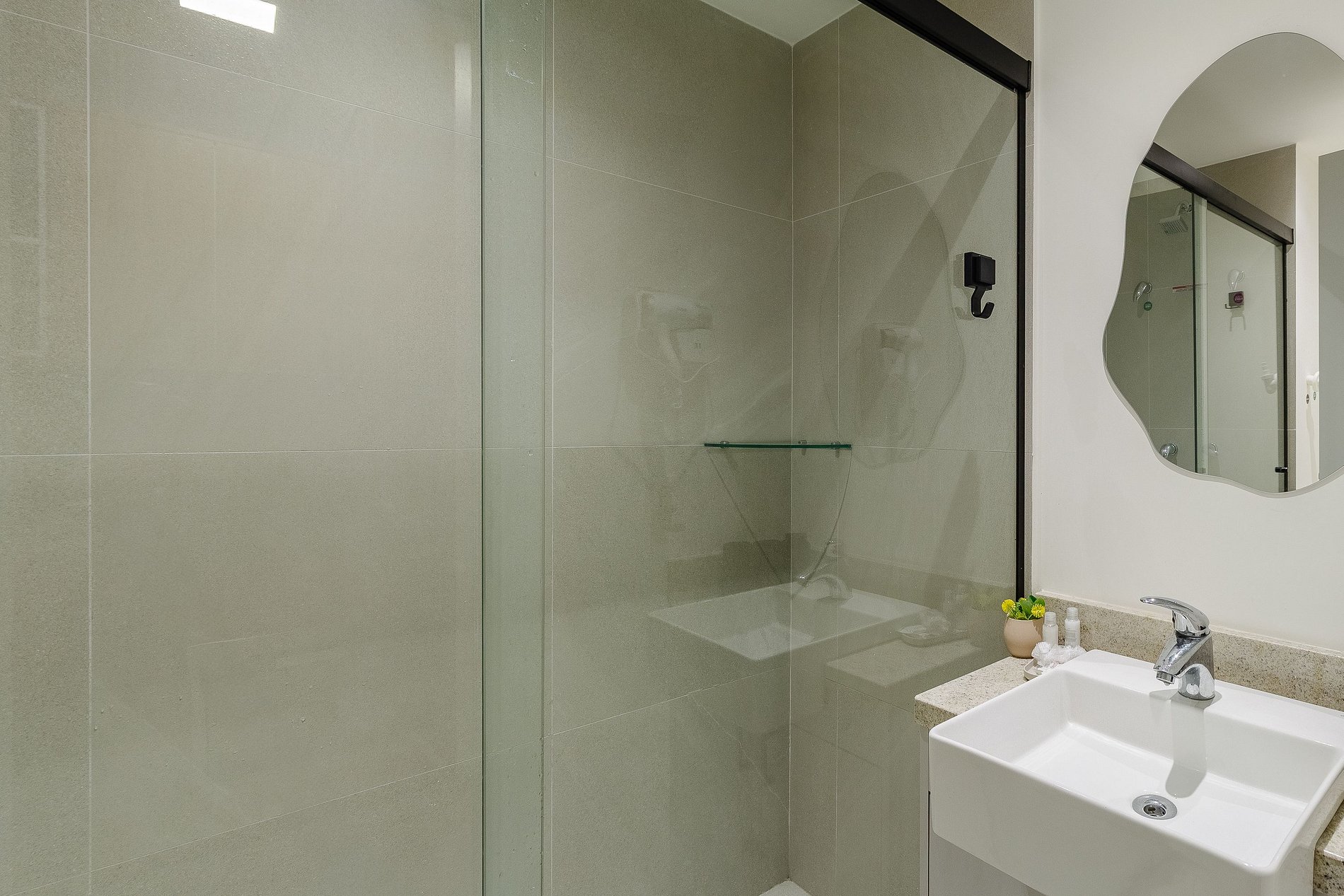 Este studio mobiliado de alto padrão oferece um ambiente aconchegante, funcional e estiloso. Equipado com cama casal, Smart TV com acesso a plataformas de streaming, Wi-Fi de alta velocidade, espelho de corpo inteiro, ar-condicionado e cozinha completa com cafeteira, torradeira e utensílios, o espaço atende tanto quem vem a trabalho quanto quem busca lazer. O banheiro conta com chuveiro de alta pressão e água quente, e a hospedagem é pet friendly.